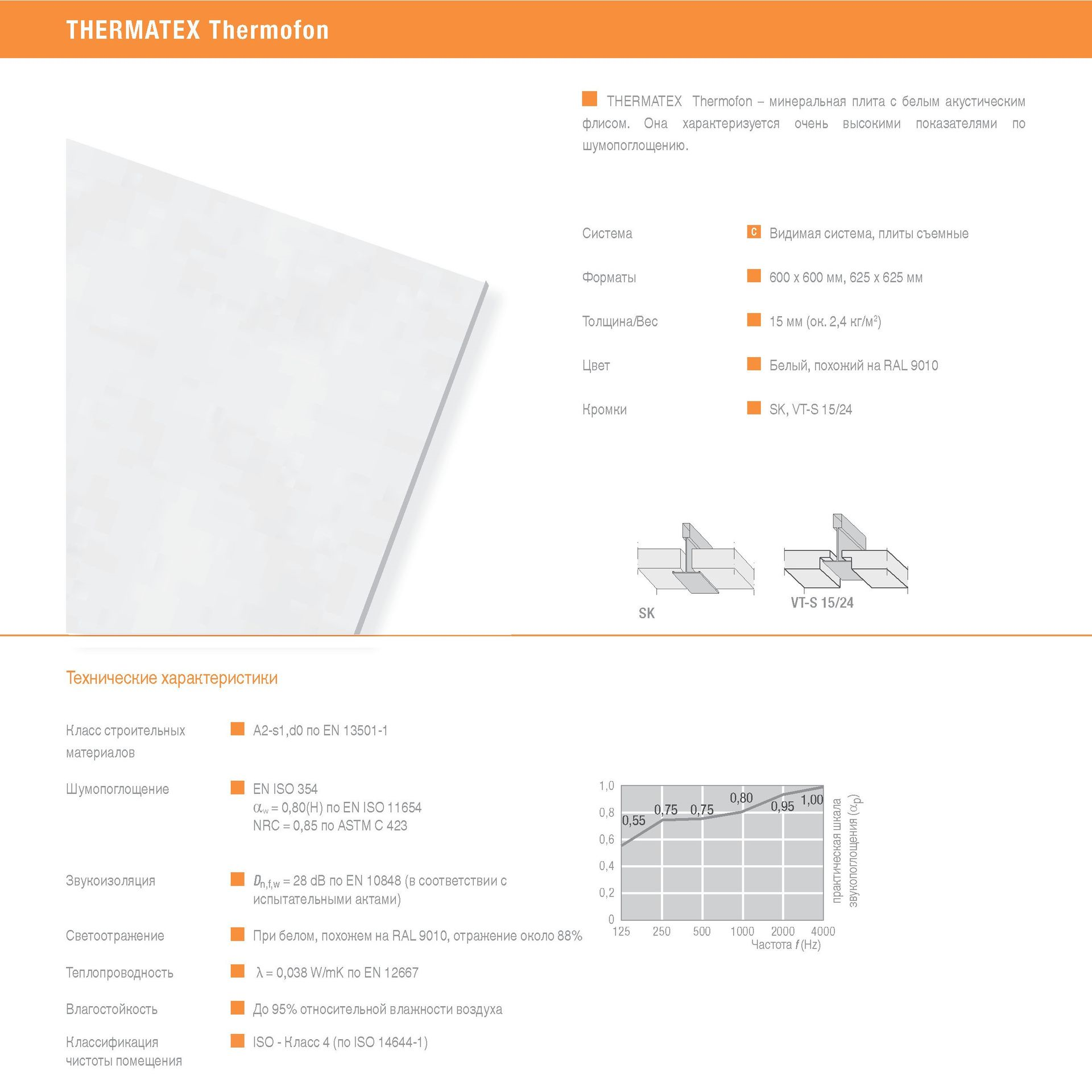 Потолочная плита AMF Thermofon 600х600х15