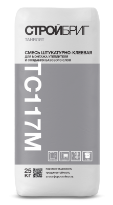 Штукатурно-клеевая смесь СТРОЙБРИГ ТАНИЛИТ ТС117 M предназначена для монтажа пенополистирольных и минераловатных плит, создания армированного базового штукатурного слоя.