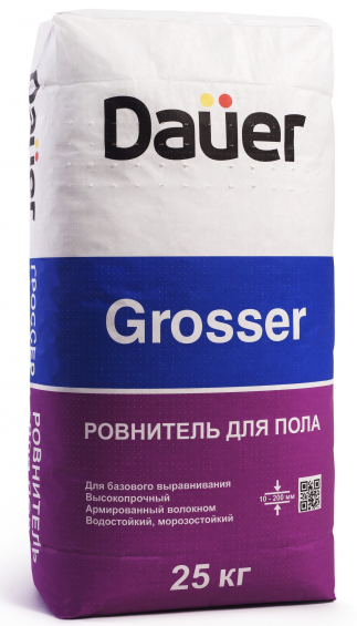 КУПИТЬРовнитель для пола Dauer "GROSSER" предназначен для предварительного выравнивания и монтажа высокопрочных стяжек снаружи и внутри жилых, офисных, торговых и общественных помещений, балконов, лестниц, отмосток, террас, эксплуатируемых кровель, а также гаражей и автомобильных стоянок с умеренной нагрузкой. Применяется для монтажа стяжек на разделительном слое и «плавающих» стяжек (по тепло-, звуко-, гидроизоляционным слоям), обогреваемых стяжек с электрическим и водяным подогревом, а также создания стяжек «полусухим» способом. Рекомендуется под дальнейшую укладку напольных покрытий (керамической плитки, керамогранита, плитки из натурального камня, ламината, линолеума, текстильных ковровых покрытий) и под дальнейшую заливку наливных полов (в т.ч. на цементной и полимерной основах).